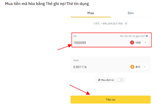 Sau khi đã điền thông tin giao dịch mong muốn, ấn phần “Tiếp tục”